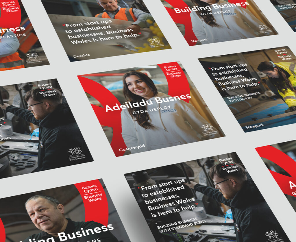 We began by reviewing the existing brand through focus groups, workshops, and surveys. The insight was clear: while Business Wales was trusted and recognised as helpful, there was an opportunity to make it more personal and champion the businesses it supports. Many start-ups were also unaware of the full breadth of services beyond finance and grants.