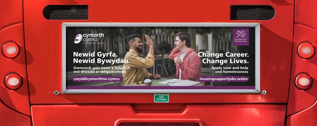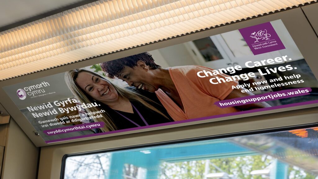 Working closely with Welsh Government, we developed a national campaign that reframed homelessness and housing support as purpose‑driven work. The focus was on people with transferable skills, communication, empathy, relationship‑building, regardless of previous experience.